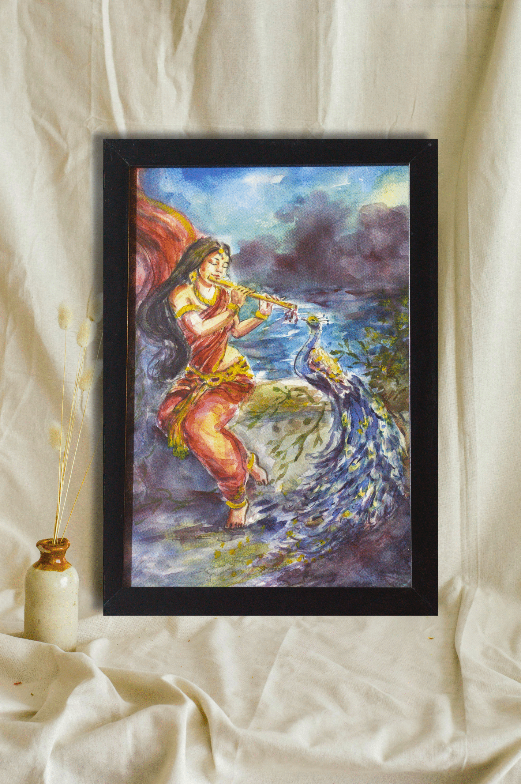 This artwork is perfect for those who appreciate cultural storytelling and peaceful imagery. Ideal for living rooms, meditation corners, or as a thoughtful gift for lovers of music, art, and Indian heritage.