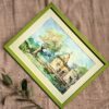 This small landscape painting captures the calm and beauty of a traditional Indian temple set in lush greenery. The soft colors and fine brushwork create a peaceful mood, perfect for any space that needs a touch of calm.
